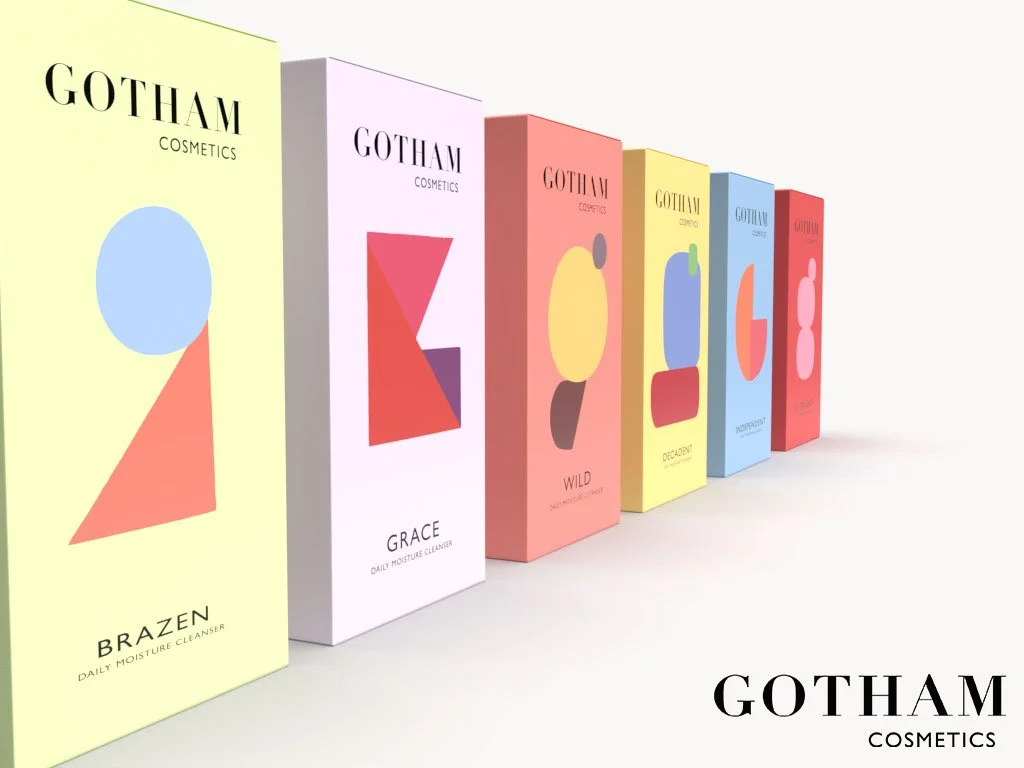 Gotham Cosmetics is a personal project. I wanted to explore shape and color in a way that was simple and dynamic. Each box explore these guidelines.